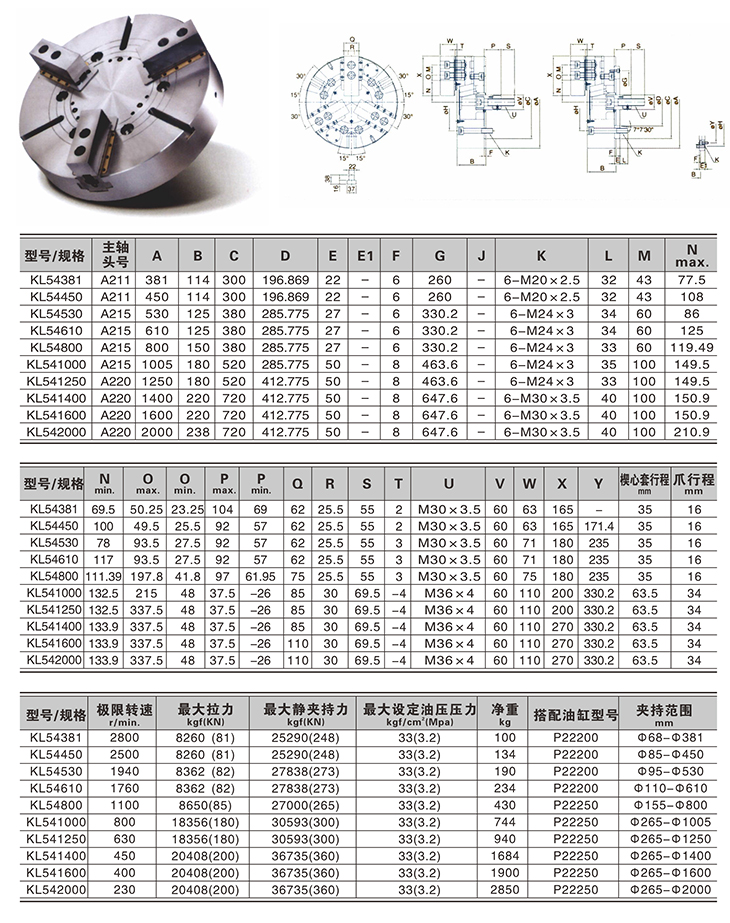 KL54 立式防水防塵動(dòng)力卡盤(pán)