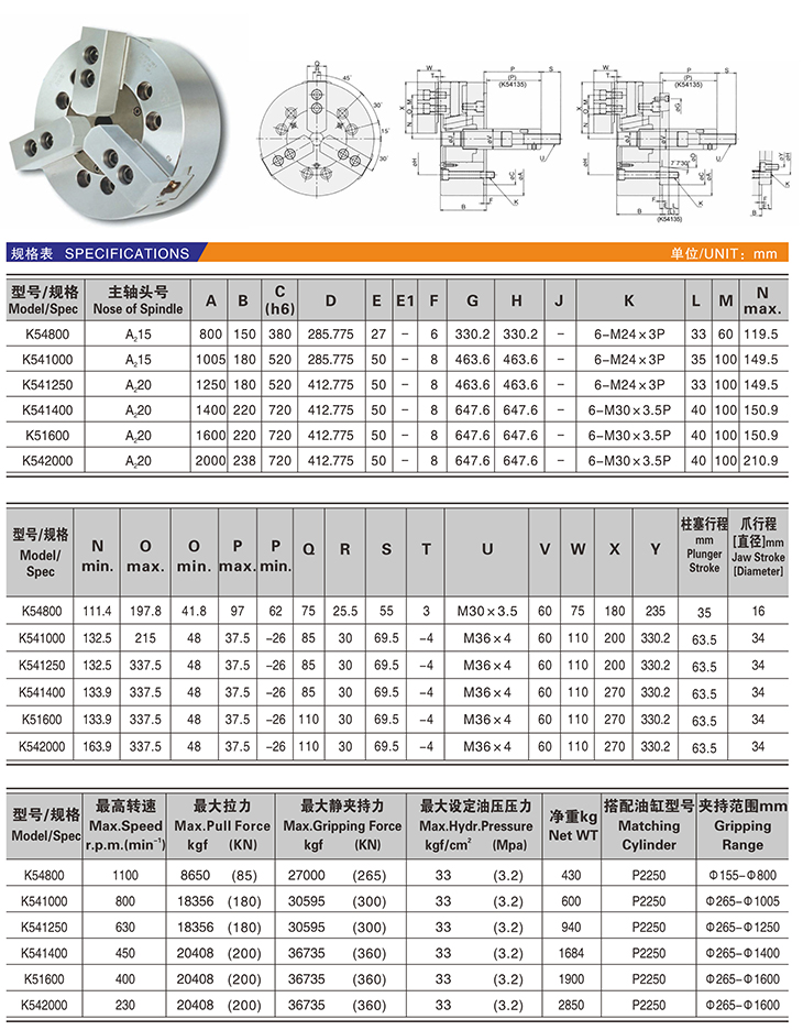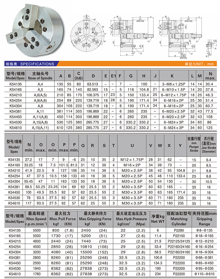 KL54~K54三爪高速中實(shí)動(dòng)力卡盤(pán)